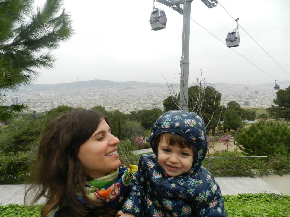Primer dia! Caminata por el Gótico, el Born, y el Raval (menos turístico) unas cañas en el Mercado de La Boqueria, en la barra, croquetas de jamón, y callos…Renata come de todo, así que, tampoco en eso resulta un problema. Y por último fuimos al Monjuic al teleférico (7 euros), cada ticket. Lo valen, las vistas son monumentales. De noche comimos algo liviano en la cocina en el monoambiente que alquilamos por el Born…